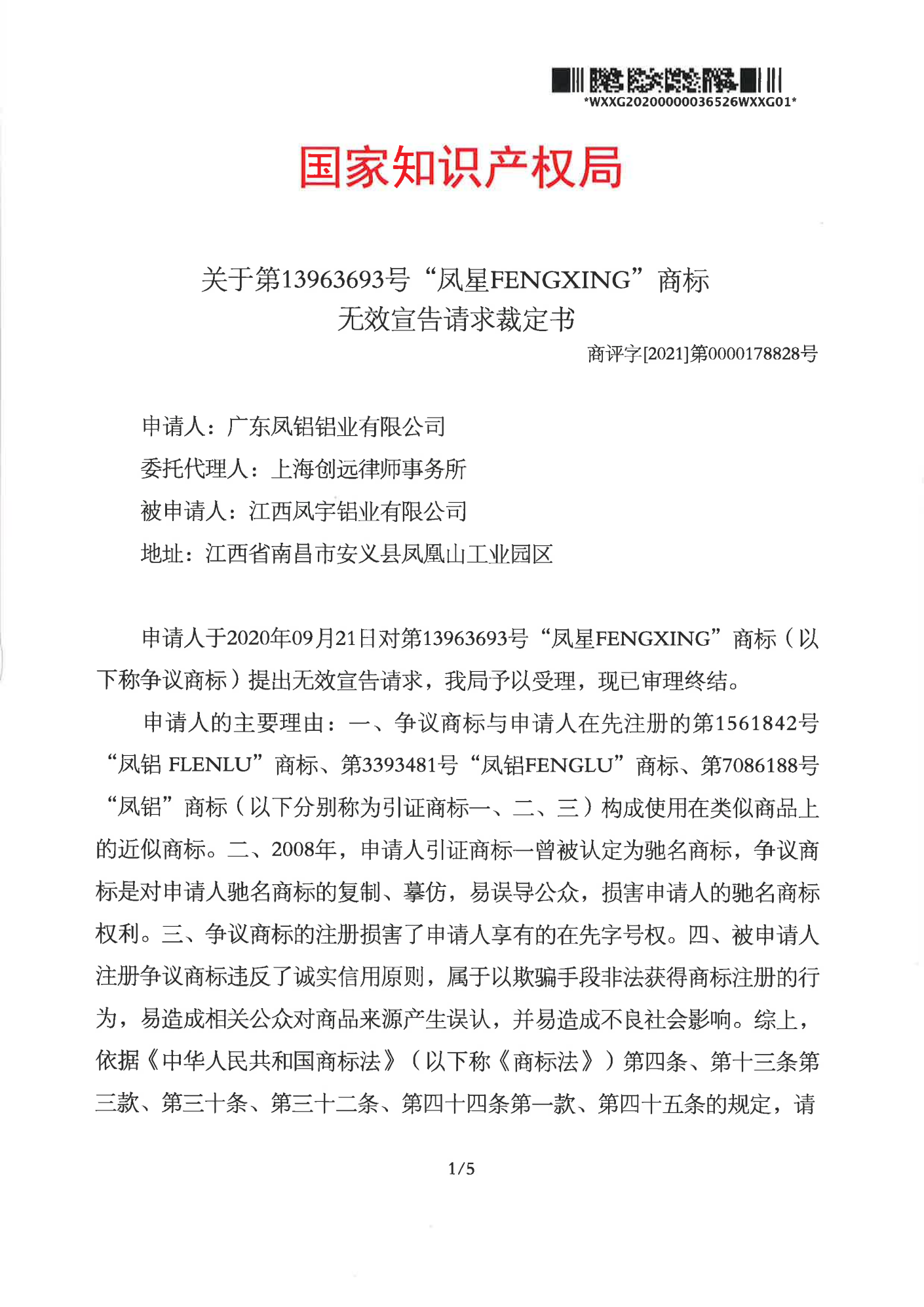 广安辉知队 | 国家知识产权局:“凤星”商标无效