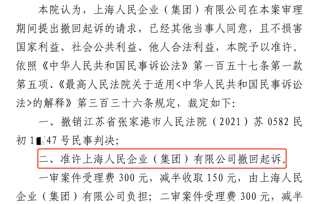 近日,由我所辉知队马律师、姚律师代理的苏州中院人民企业系列维权案迎来终结,上海人民企业(集团)有限公司(以下简称上海人民公司)对六个被告撤诉。这是继山东成武法院上海人民公司撤诉后,其再一次在系列案件中撤诉结案。值得注意的是,本次苏州中院六案审理过程中,上海人民公司态度强硬,在自身权利基础存在瑕疵甚至重大缺陷的情形下,既拒不撤诉,亦拒绝调解。在另案中西安中院、陕西高院陆续驳回原告诉请的背景下,苏州中院高度重视,案件提交了审委会审查。审委会审查后,上海人民公司决定撤诉(撤诉裁定如下)。苏州六案中,上海人民公司态度前后差异甚巨,其撤诉原因相信大家不言自明。