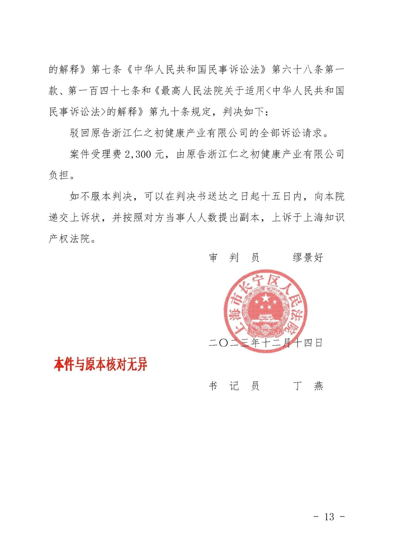 广安辉知胜诉佳讯 | “仁之初健康”著作权及不正当竞争纠纷案,法院:驳回全部诉讼请求!